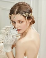 Designed for the bride who walks in her own light, the Celestial Vine Headpiece captures the quiet magic of the stars. Handcrafted with crystal-dusted leaves and delicate teardrop gems, it shimmers like moonlight woven through silver vines — an ode to celestial romance and modern grace.